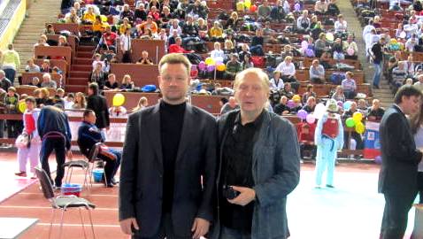 Почетный гость Фестиваля восточных единоборств Мы против наркотиков САО Москвы 04.11.2012г. олимпийский чемпион по боксу (Сеул, 1988г.) Вячеслав Яновский и офицер органов Госнаркоконтроля России подполковник полиции А.А.Глахов (Служба по САО УФСКН России по Москве).Фото - председатель НСНБР А.Г.Огнивцев, вице-президент Федерации Косики каратэ России.